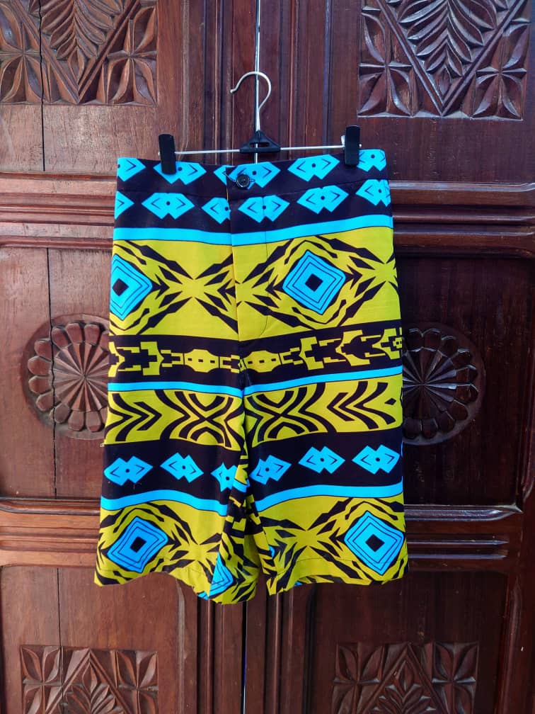 Directly inspired by surf shorts, Savanah Green shorts are designed to bring comfort and versatility to your daily outfits thanks to a colorful African pattern.