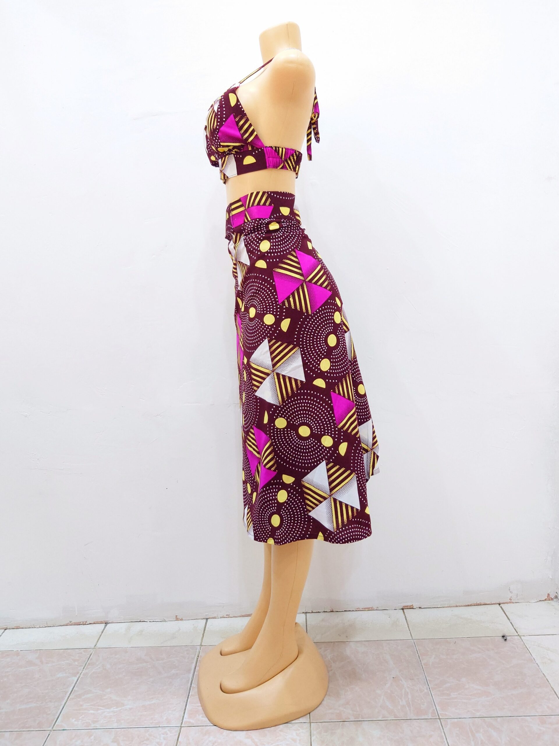 One-size-fits-all, our African Pink wrap-around skirt will fit most people’s shape and can be worn as a high-waist or ordinary.